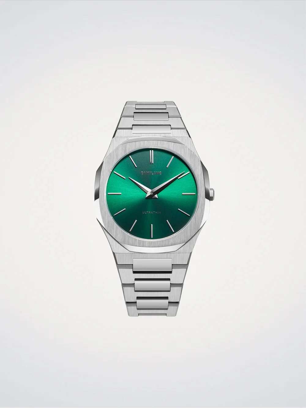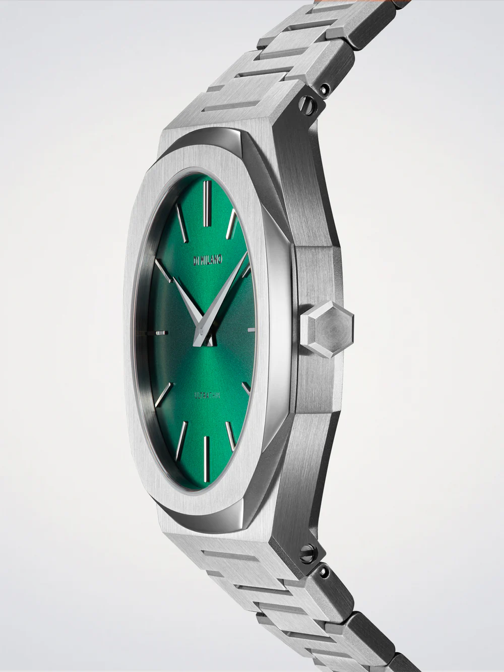 The standout detail is undoubtedly the bright green-toned dial, enriched with a soleil finishing.